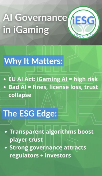 What is the connection between AI governance in iGaming and ESG?